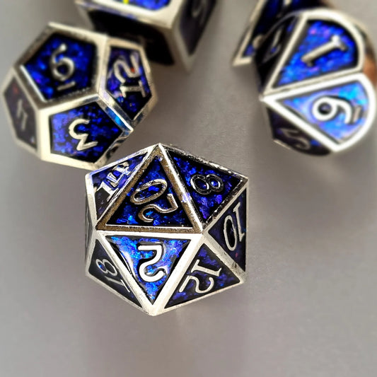 WyprzedaneGlittering Cobalt Metal DnD Dice Set